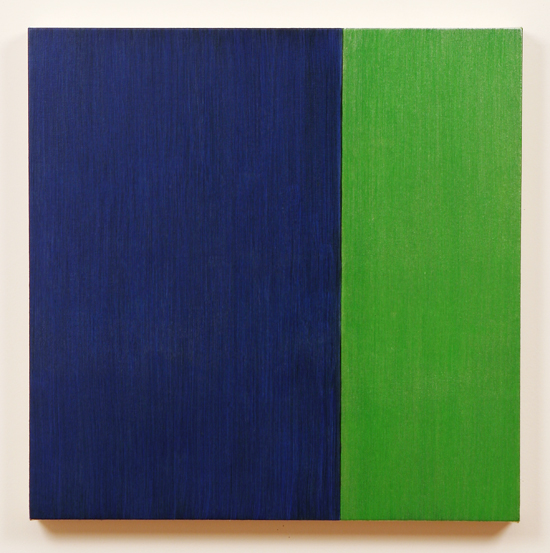 Wanting to work for the moment against the monochrome I divided the canvas vertically (not in the center but not either close to the edge making a narrow strip) in a proportion close to the Golden Mean, arrived at purely visually. Each of the two resulting vertical rectangles was painted in double glaze, one color over another. Inspiration for the colors came from objects from the world around me, another difference from my past work in which I was inspired by the color of the paint itself. ![]() ![]() ![]() |